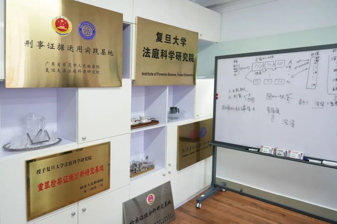 一旁墙上挂满了合作基地的授牌:最高人民检察院“重罪检察证据分析研究基地“的铜牌旁,是研究院与广东省东莞市人民检察院共建的“刑事证据运用实践基地”、与襄阳市人民检察院共建的“检察证据分析研究基地”等一系列实践基地。这种“实战需求-科研攻关-应用反馈”闭环已延伸至北京、上海、西藏等多个法庭科学实践基地,方便学生们从书本、实验室跨进“一线战场”,在实战平台上积累经验,再把应用场景内化为科研命题。