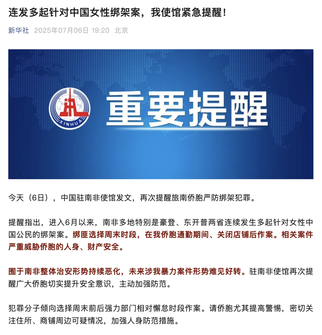他清楚记得案件案情:5月底,南非某社区再次发生针对中国公民的绑架案,犯罪团伙精准锁定被害人下班路线,在其上车前的瞬间,四名绑匪同时下车将被害人挟持到其驾驶的车辆上,迅速逃离现场,现场仅留下两段1分钟左右的模糊监控视频。