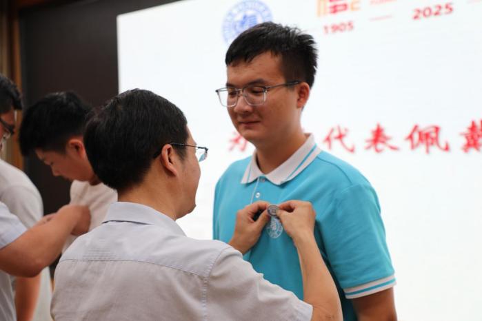 典礼中举行了庄重的院徽佩戴仪式。学院领导及新生导师为新生代表佩戴院徽,象征着2025级学子正式成为学院一员。一枚院徽,一份归属,更是一份责任。新生们纷纷表示,将铭记这一刻的荣耀与使命,坚定初心、勇毅前行。